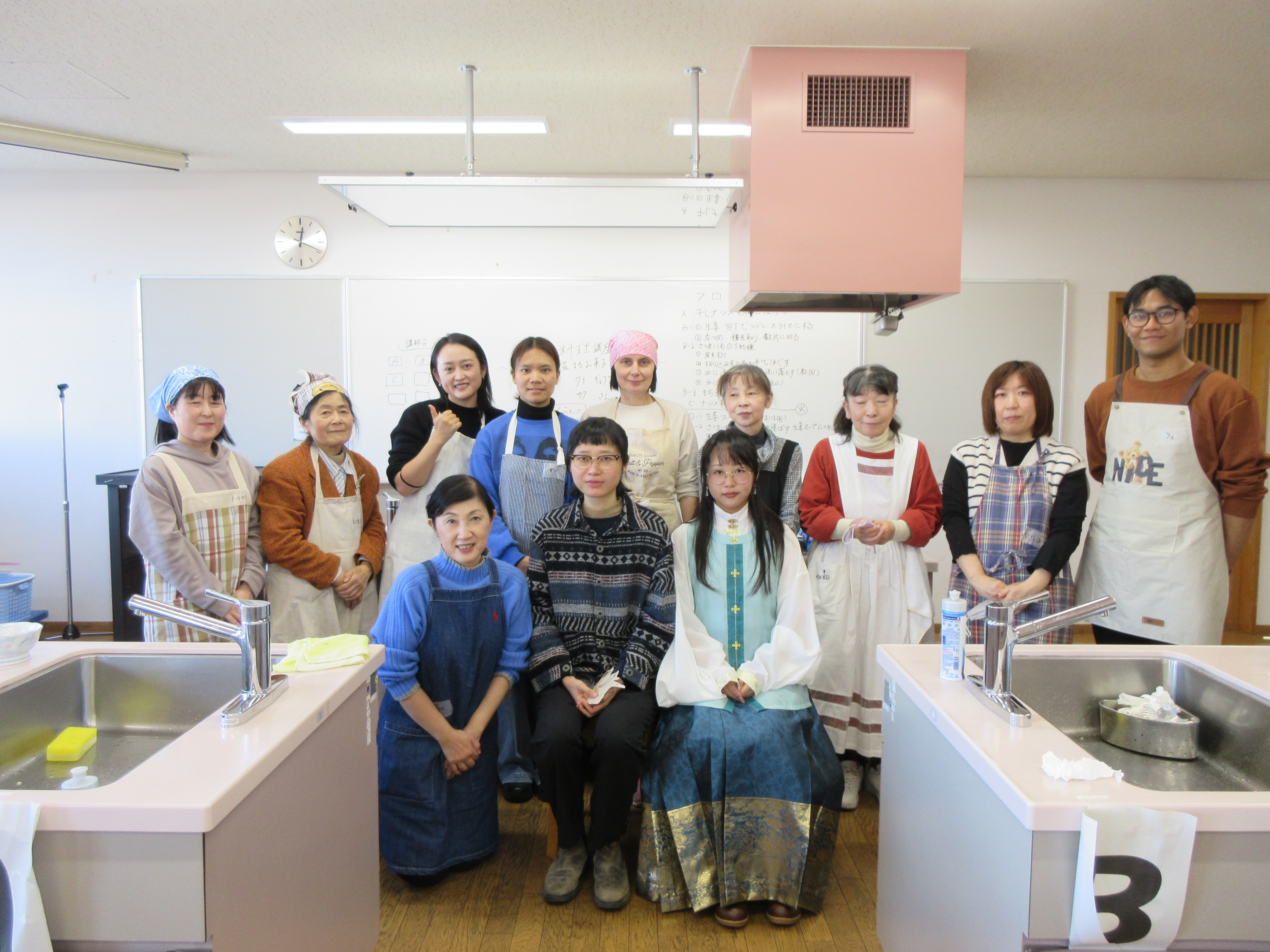 佐賀大学中国出身の留学生タイ ギョクケツさんとカク センケイさんを講師にお迎えし、「さつま芋と生姜の黒糖スープ、ナツメ餅のシロップかけ、中国茶の(岩茶・紅茶)」を教えていただきました。お二人から参加者に、400年前から続いている中国茶の淹れ方を振舞っていただきました。