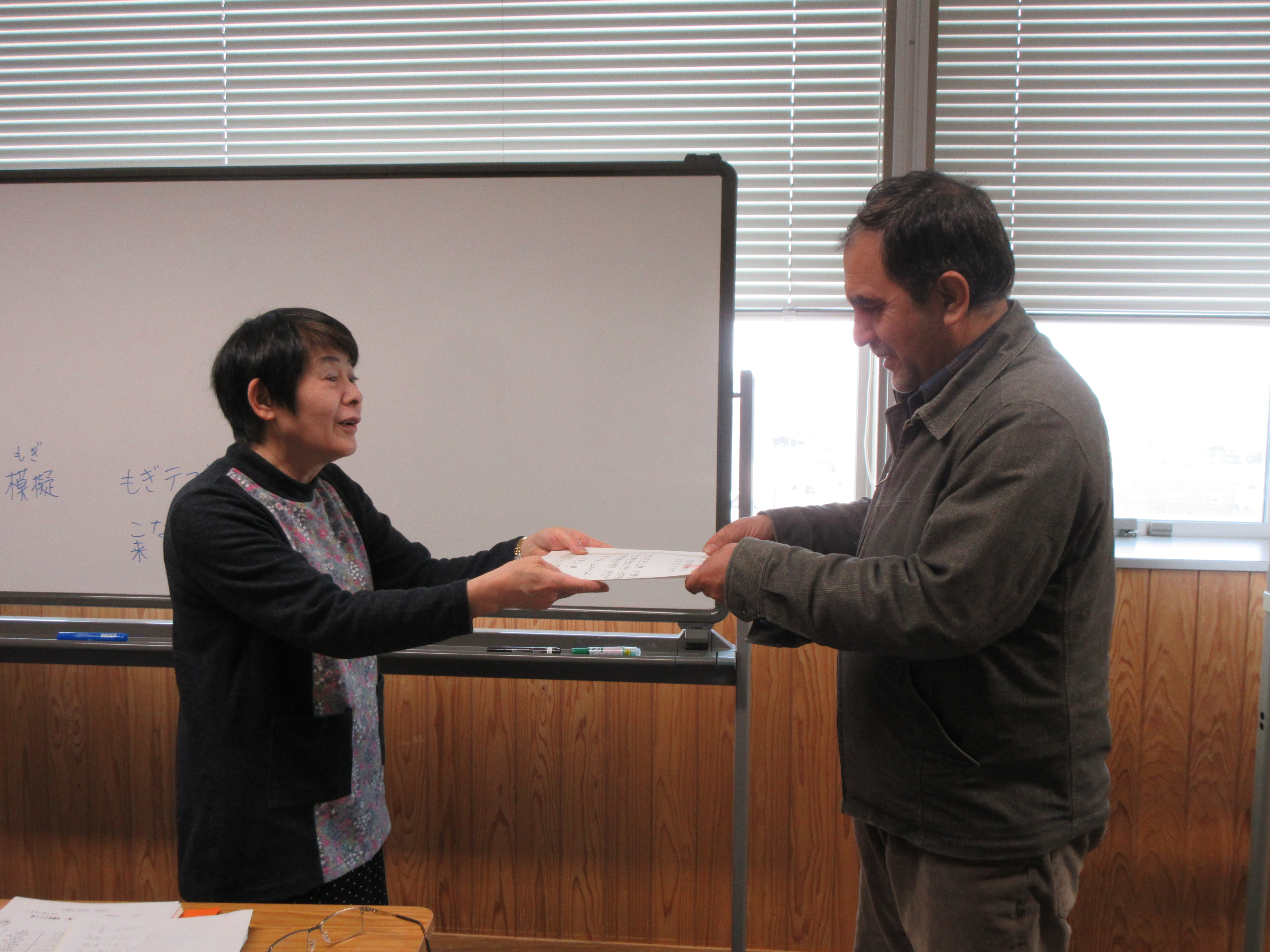 最終日はお仕事の関係上、みなさんが揃わずお一人だけの修了式になりましたが、綺麗な発音の日本語で感謝の気持ちを話されました。