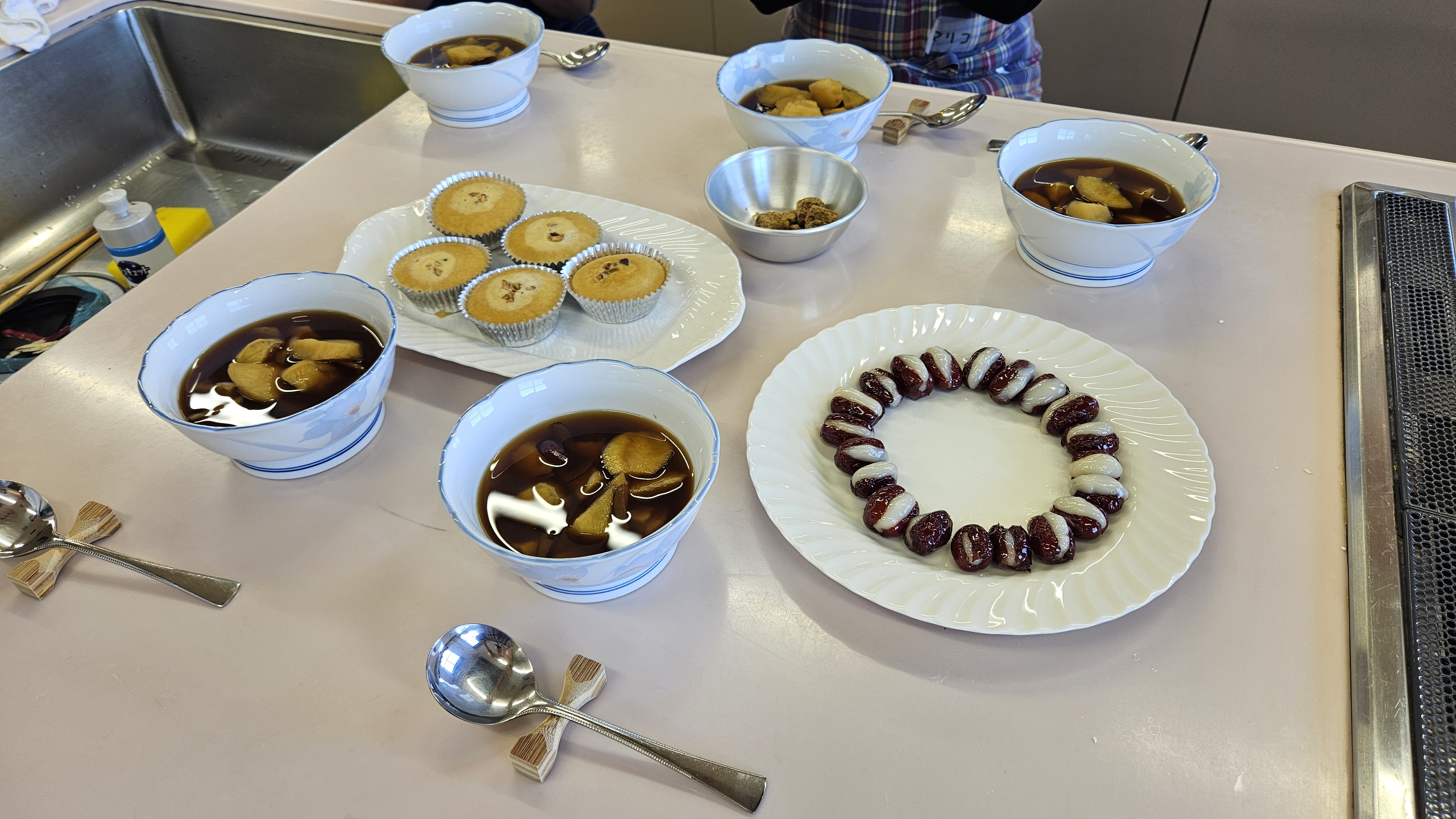 生姜の効いたさつま芋のスープと、体調を整えてくれるナツメ餅、温かいお茶で心も体も温まり、参加者の方も喜ばれていました。