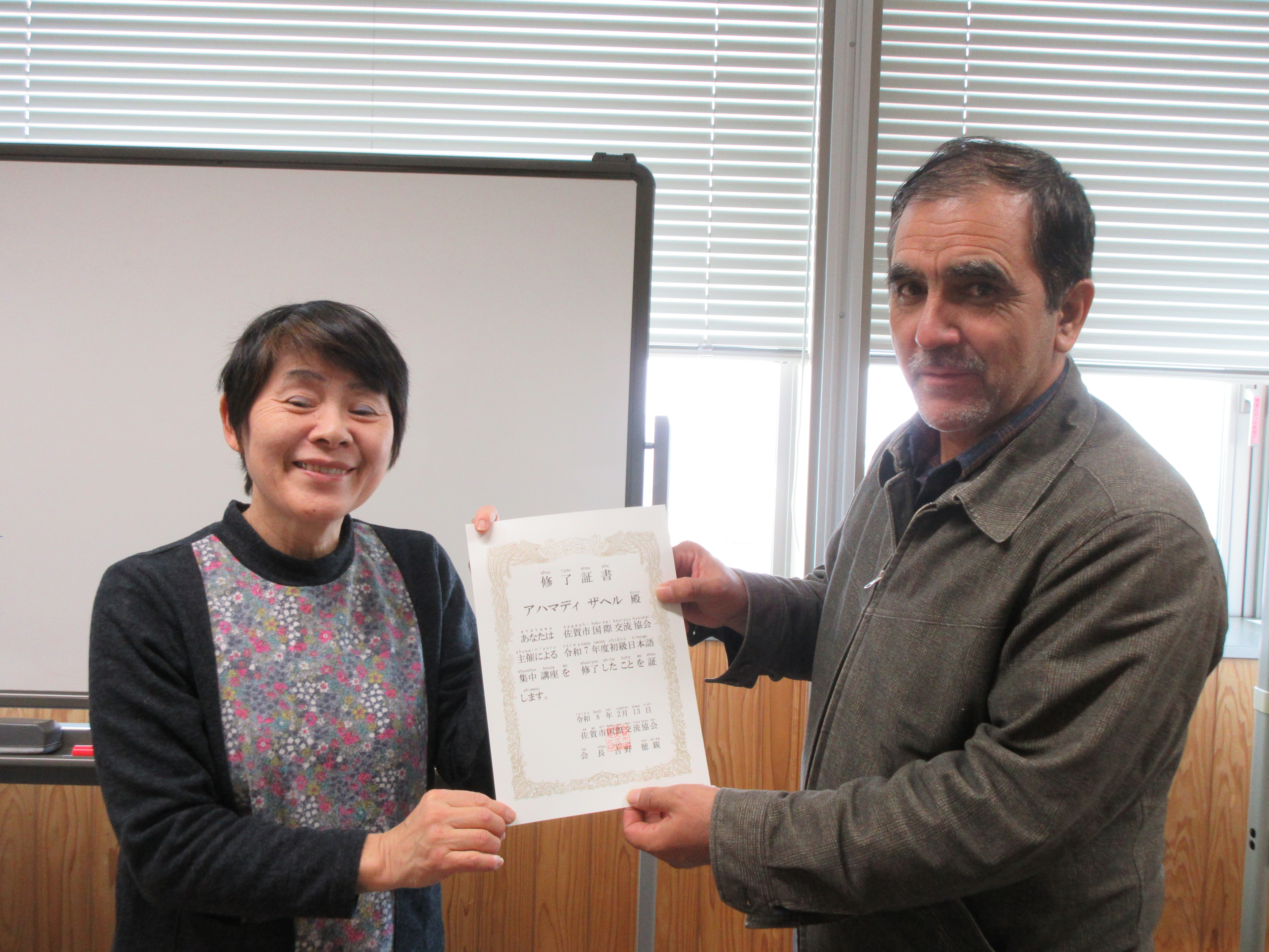 最終日はお仕事の関係上、みなさんが揃わずお一人だけの修了式になりましたが、綺麗な発音の日本語で感謝の気持ちを話されました。
