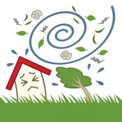 さがに つよい たいふう が きています。 ラジオ、テレビ、スマートフォンのじょうほう を よくきいてください。