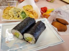 佐賀海苔を使った巻きずし、佐賀の玉ねぎやれんこん等の天ぷら、